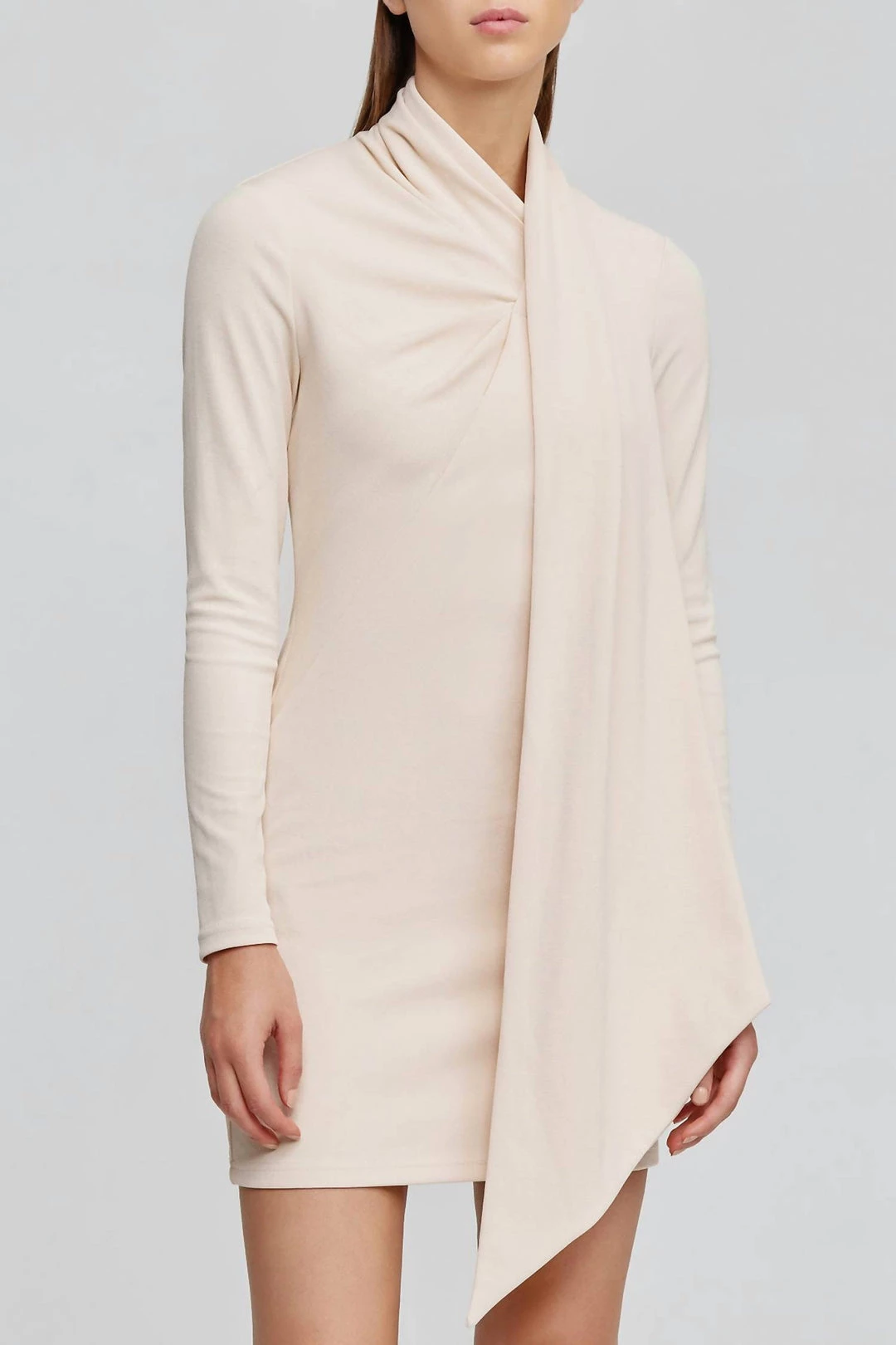 The Haye mini dress is cut to be fitted through the bodice, featuring full length, tailored sleeves and draping fabrication detail at the neckline, lined bodice
