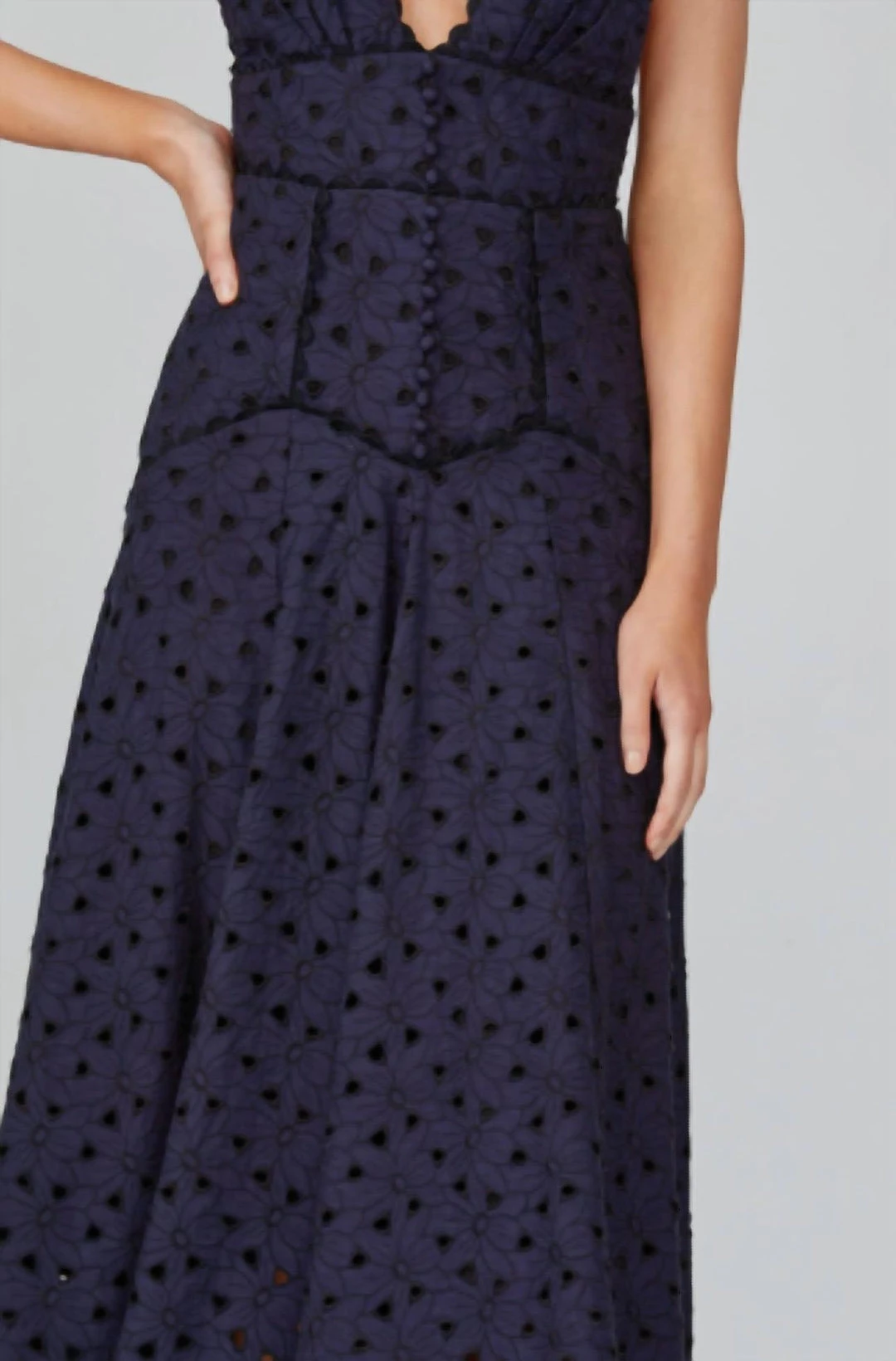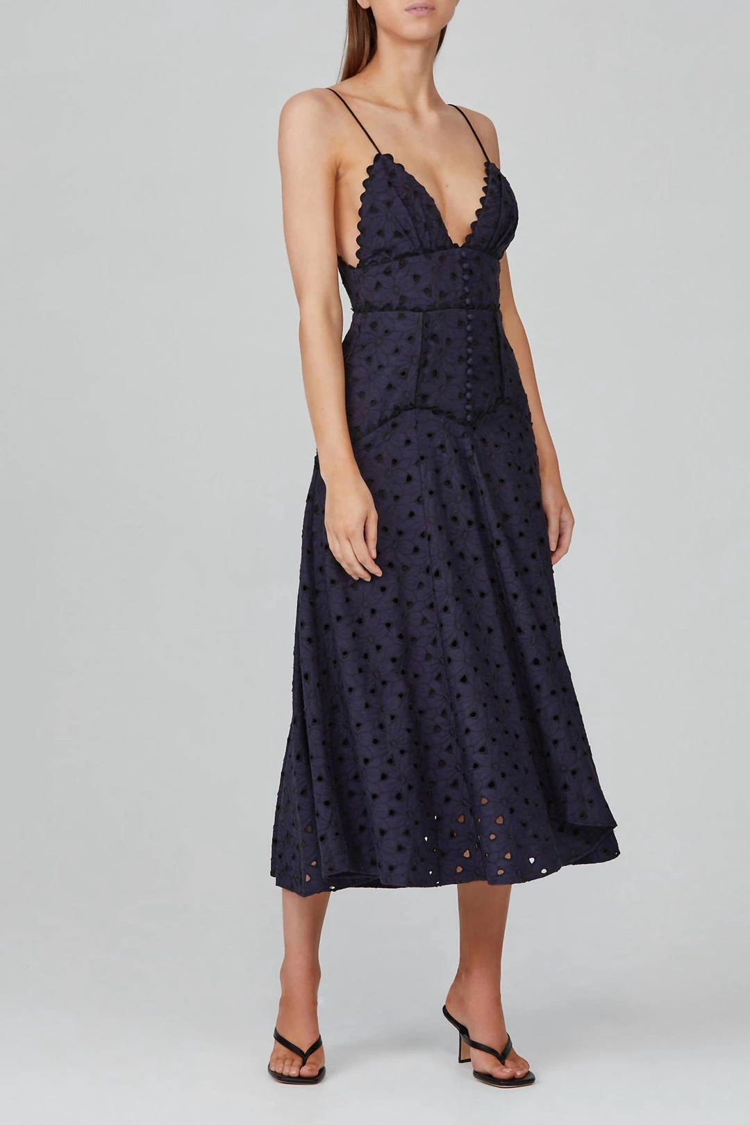 Details – – Midi Dress- Plunging neckline- Vertical button detailing- Spaghetti straps- Invisible back zip- Fully lined- Model wears size 8AU / 4USModel height – 180cm