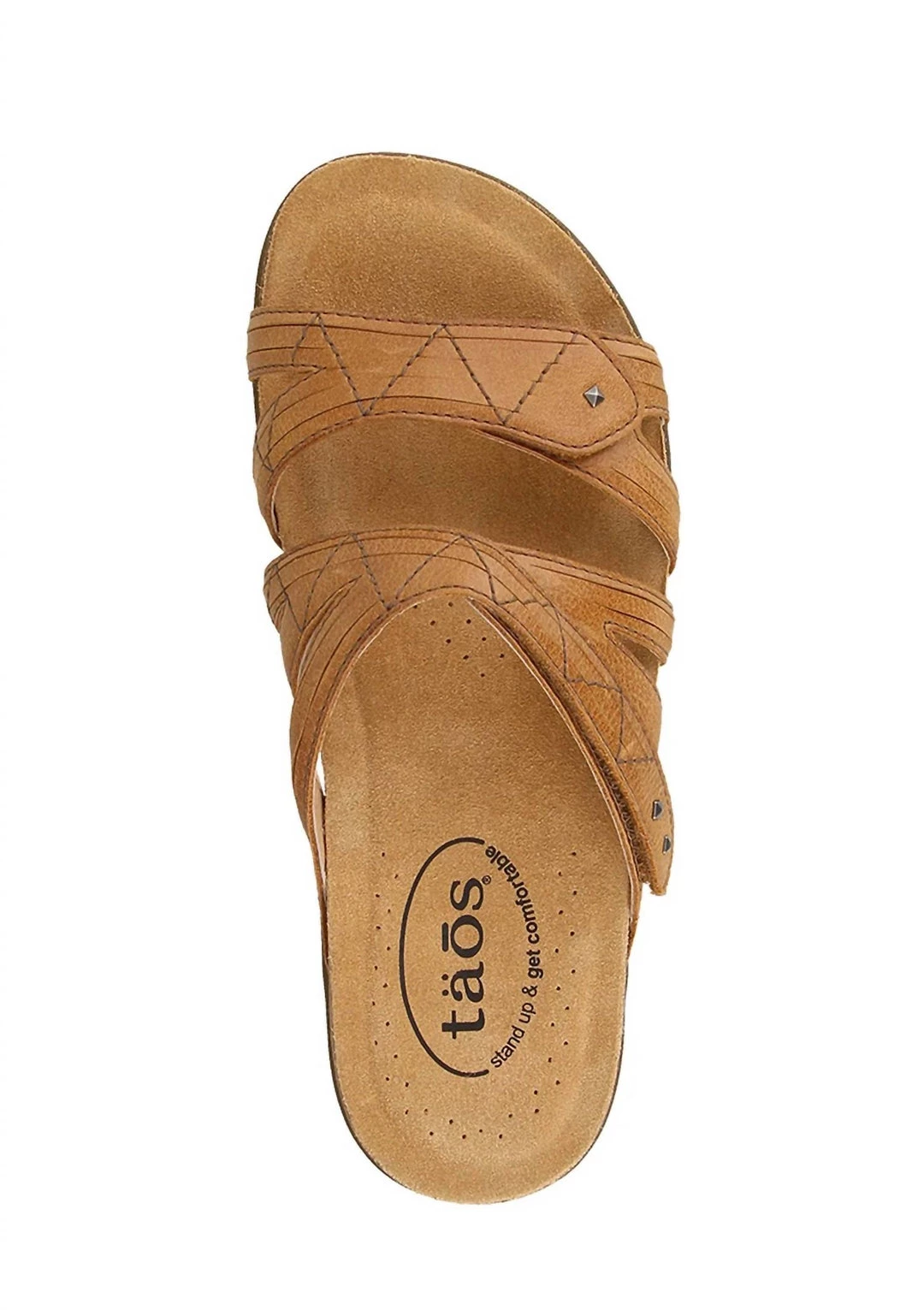 Rubber sole. Sliding sandal with two adjustable hook and loop straps, detailed stitching and metal studs.. Flexible and padded cork and EVA insole. Velcro closure for fit and comfort. Flexible and durable rubber outsole. Heel Height – 0.5″