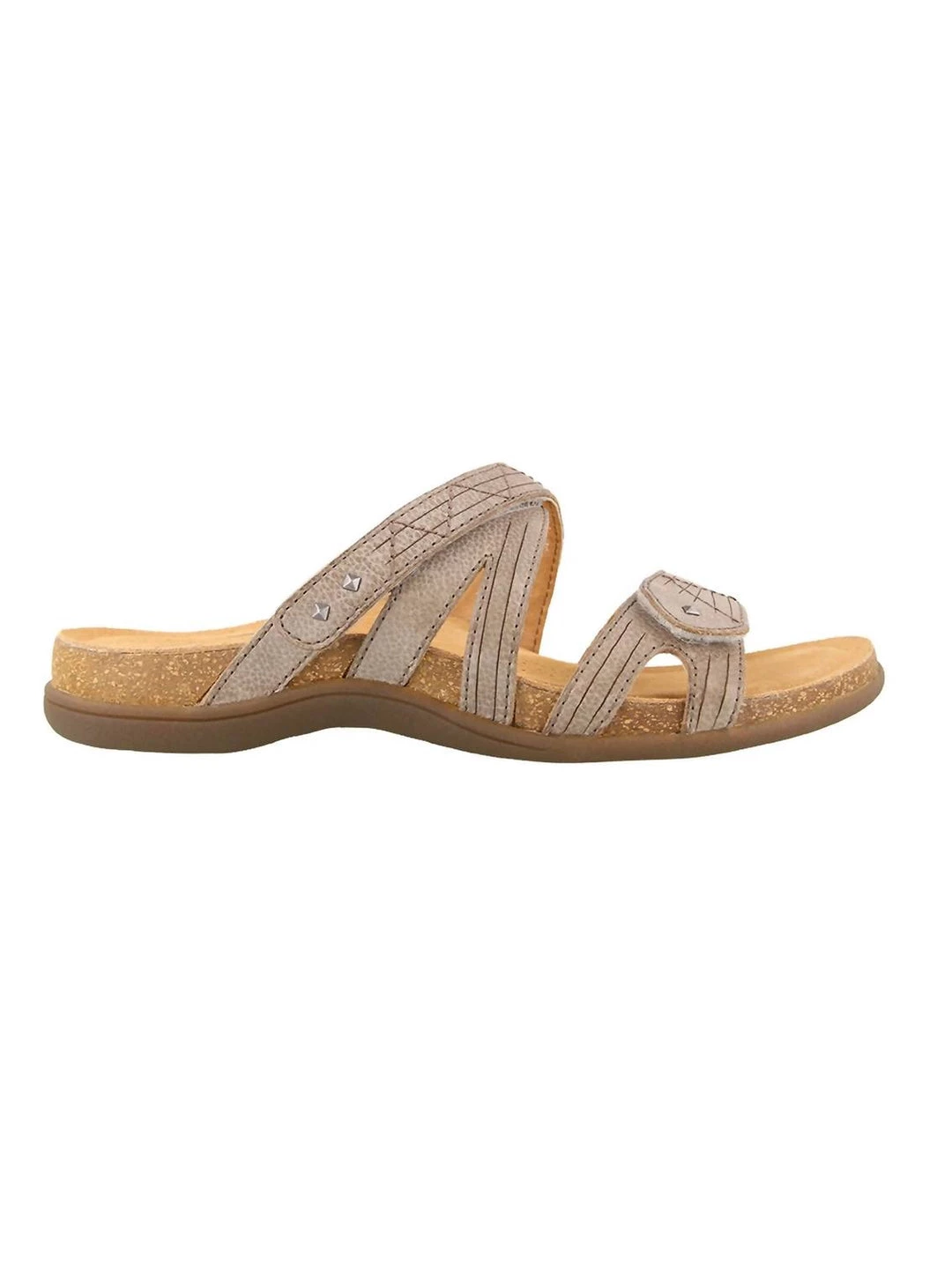 Rubber sole. Sliding sandal with two adjustable hook and loop straps, detailed stitching and metal studs.. Flexible and padded cork and EVA insole. Velcro closure for fit and comfort. Flexible and durable rubber outsole. Heel Height – 0.5″